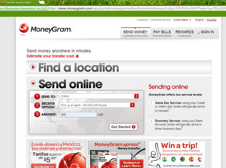 3.Go to the MoneyGram Location or MoneyGram website transfer money;