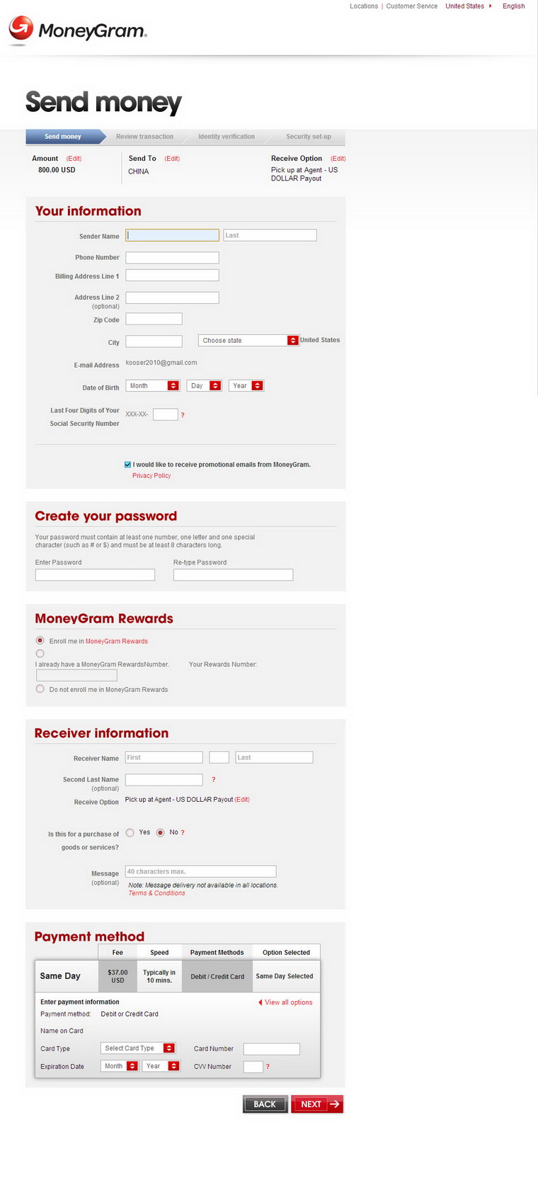 3.if you first time use the MoneyGram,please input your email address and confirm it;