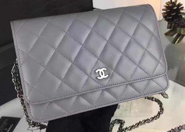 Home » Replica Handbags >> Chanel Handbag >> Chanel Flap Bags >> Chanel WOC mini Flap Bag Grey Sheepskin A5373 Silver